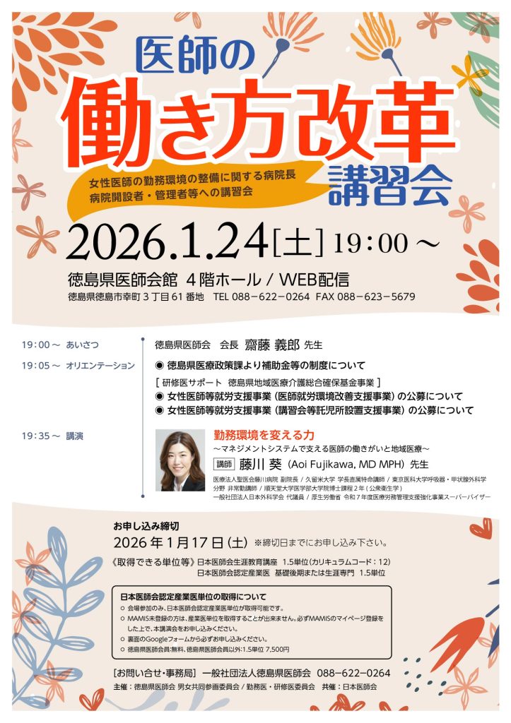 徳島県医師会では、一人でも多くの方が満足度の高いキャリア形成ができるように、